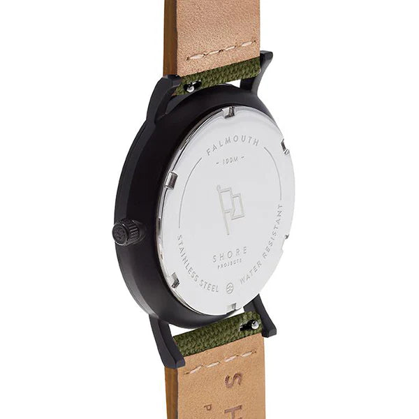 Inspired by the look of venerable explorer watches, our watches are designed to mirror vintage timepieces with modern design features and are fully equipped to both stand out and weather the demands of a modern lifestyle.Buying for someone else? Remove the guesswork with our Gift Cards. Outer Casing: Black PVD Plated 316L Stainless SteelMovement: Miyota Quartz MovementGlass: Scratch Resistant Sapphire CrystalWater Proof: 100 metersDial Diameter & Thickness: 39mm & 7.9mmSTRAP CHOICE: